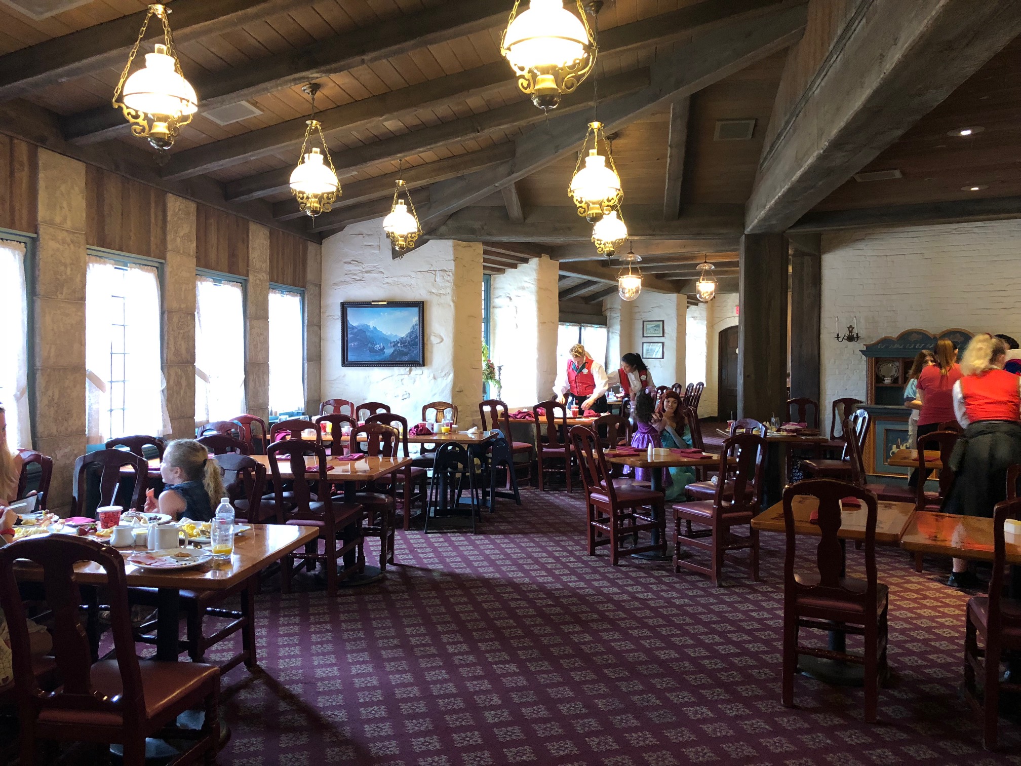 Tirando a Bela, que é a “dona da casa” e você já garante a foto com ela logo que chega, as demais princesas passam por todas as mesas enquanto você e sua família fazem a refeição.